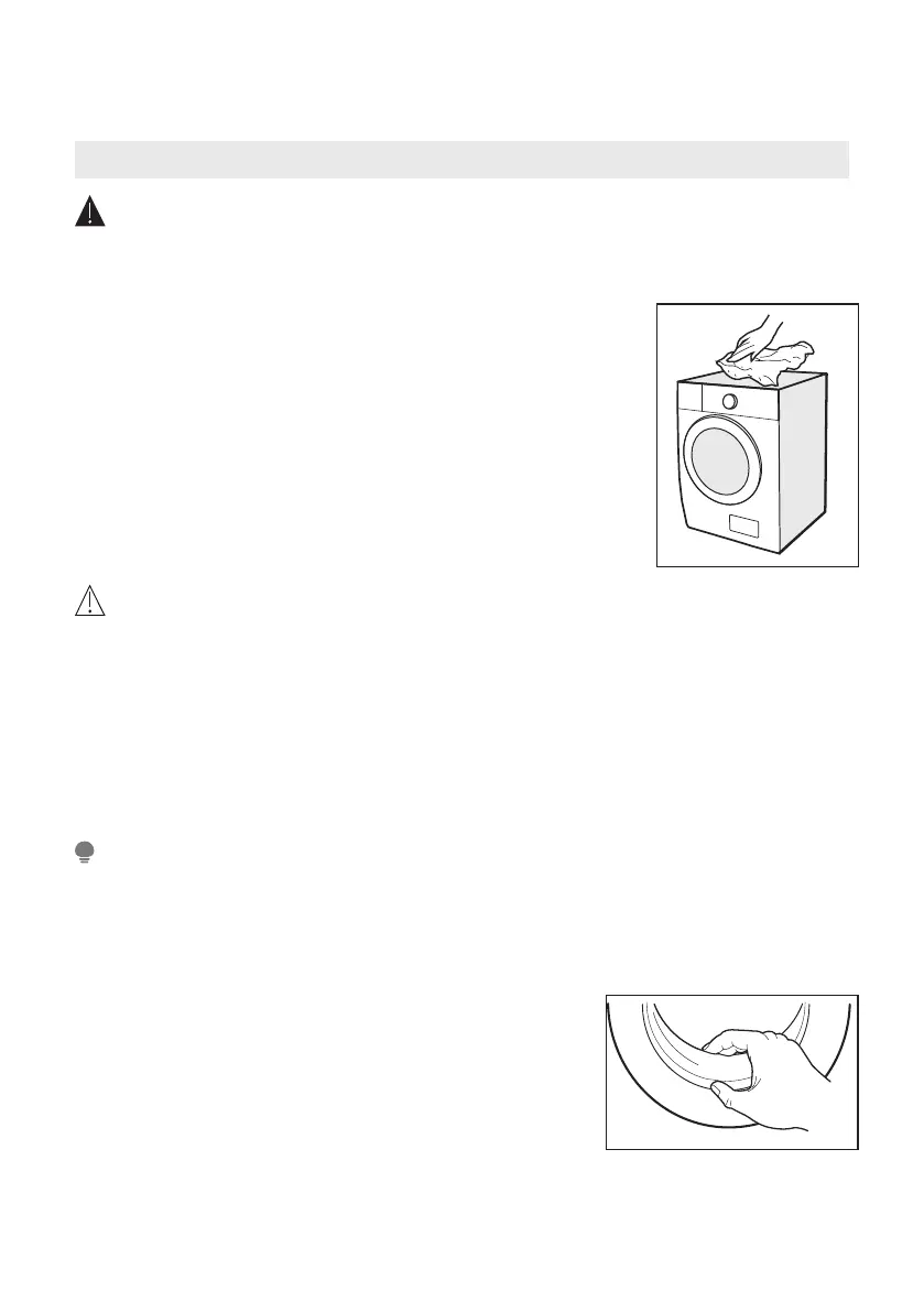 • Halten Sie jegliche Wäsche vom Gerät fern, während Sie die Trommel reinigen.