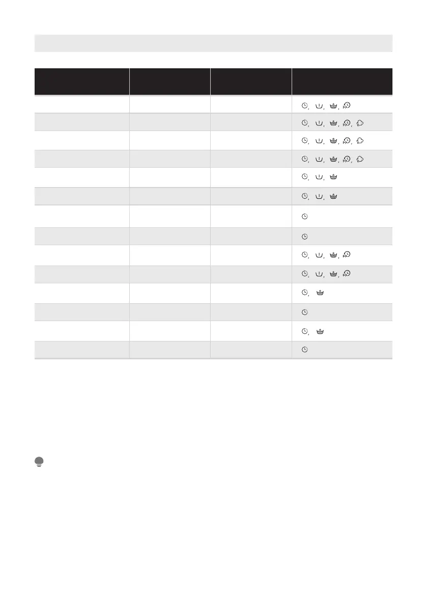 • La tabla muestra qué ciclo ofrece qué opciones de ajuste.