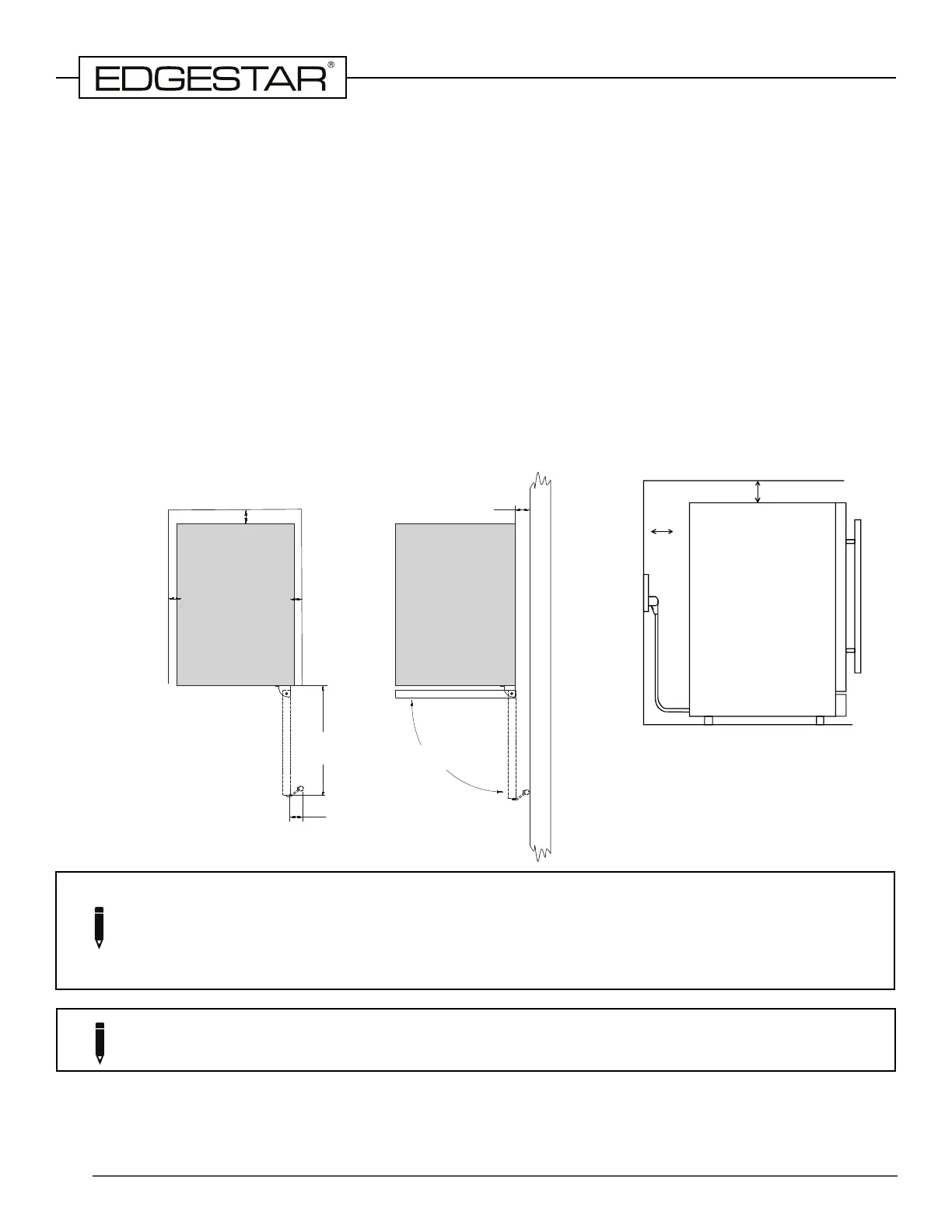 When installing the kegerator under a counter, follow the recommended spacing dimensions shown