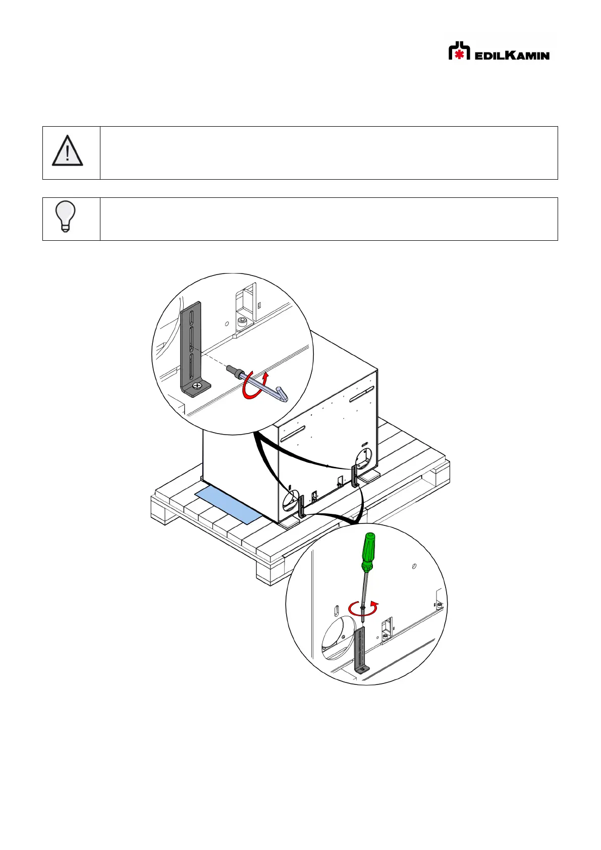 Probeer het product niet van de pallet te halen voordat u de schroeven waarmee het vastgezet