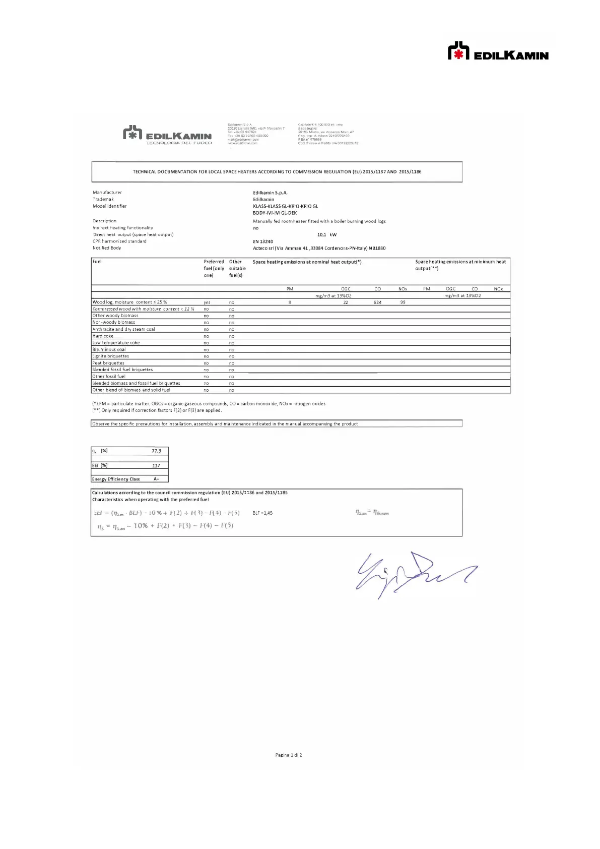 6.3. Technische gegevens ECODESIGN KLASS/KLASS GL/KRIO/KRIO GL/BODY