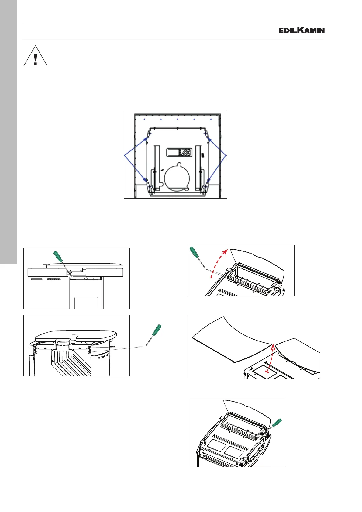•• draai de schroeven los waarmee de kachel aan de pallet is bevestigddraai de schroeven los waarmee de kachel aan de pallet is bevestigd