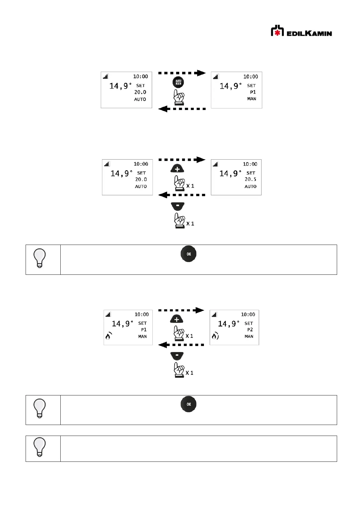 The setting can be confirmed with the button or by waiting 5” without pressing any