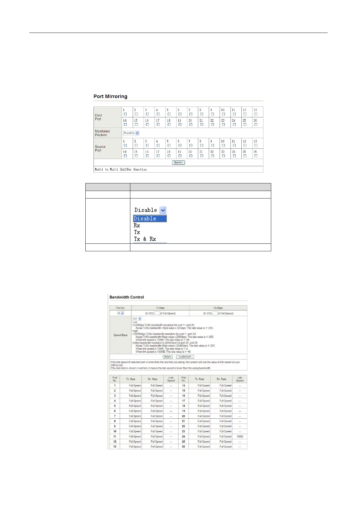 Choose Port Management > Port Mirroring, and the following page appears. In this page, you can enable port
