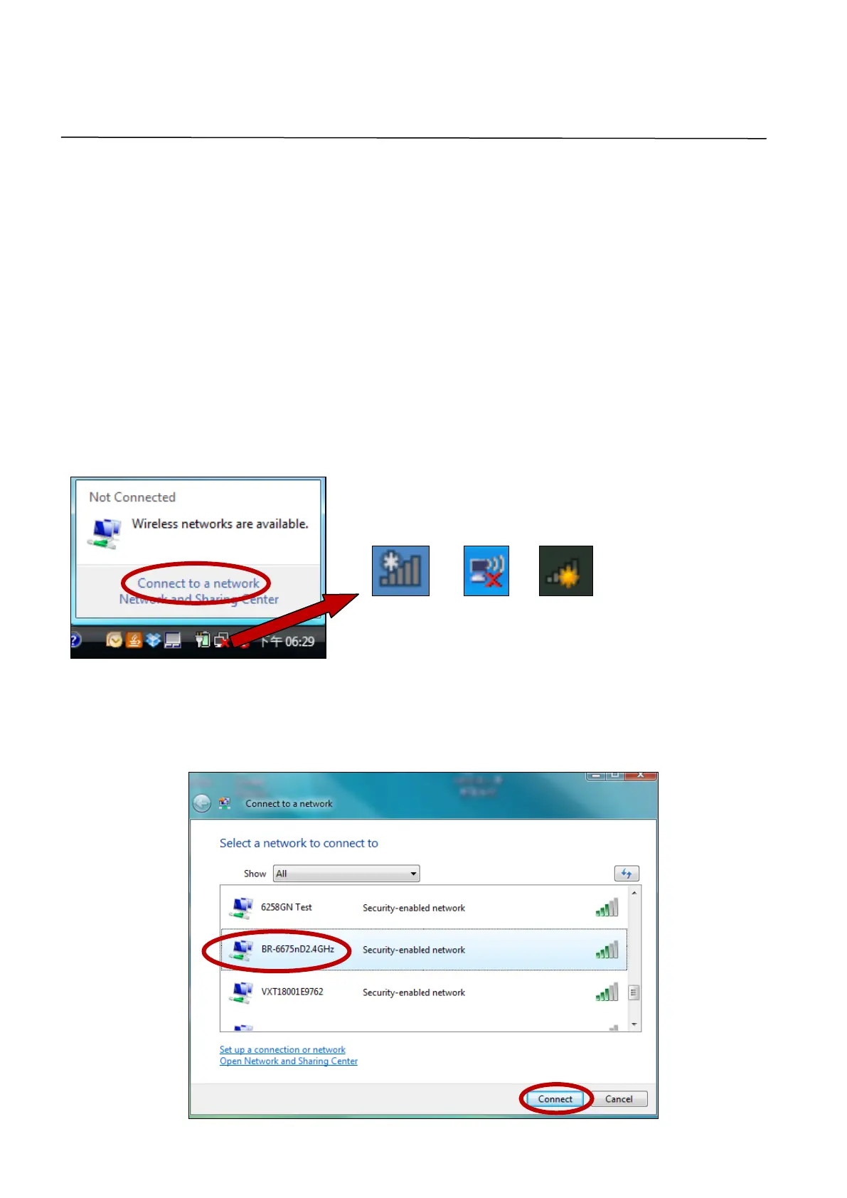 Below is an example of how to connect using Windows Vista - the process