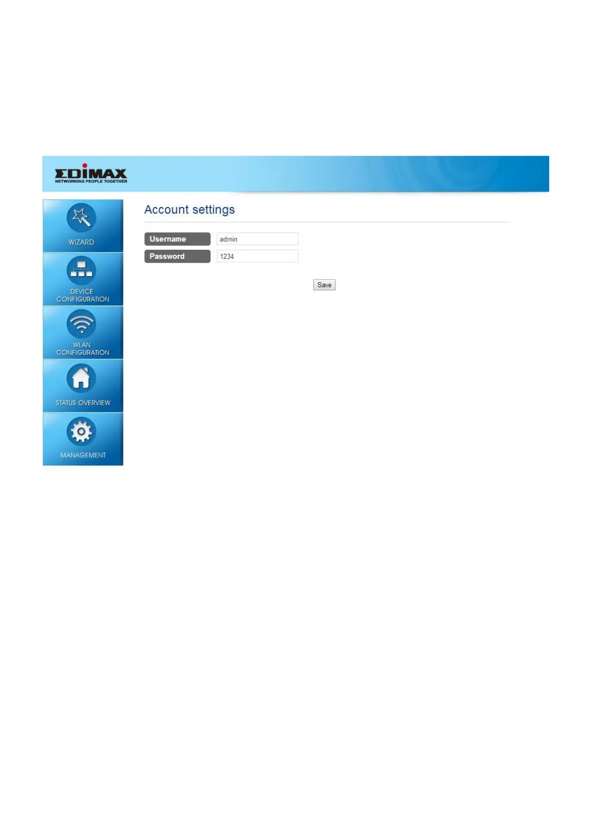 panel. The default values are username: admin password: 1234. It is