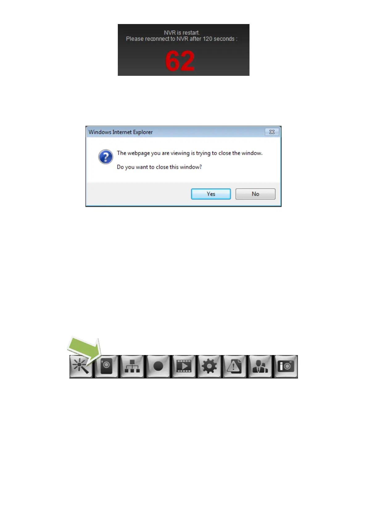Click ‘Yes’ to close window, and reconnect to NVR. Your NVR will be ready to use.