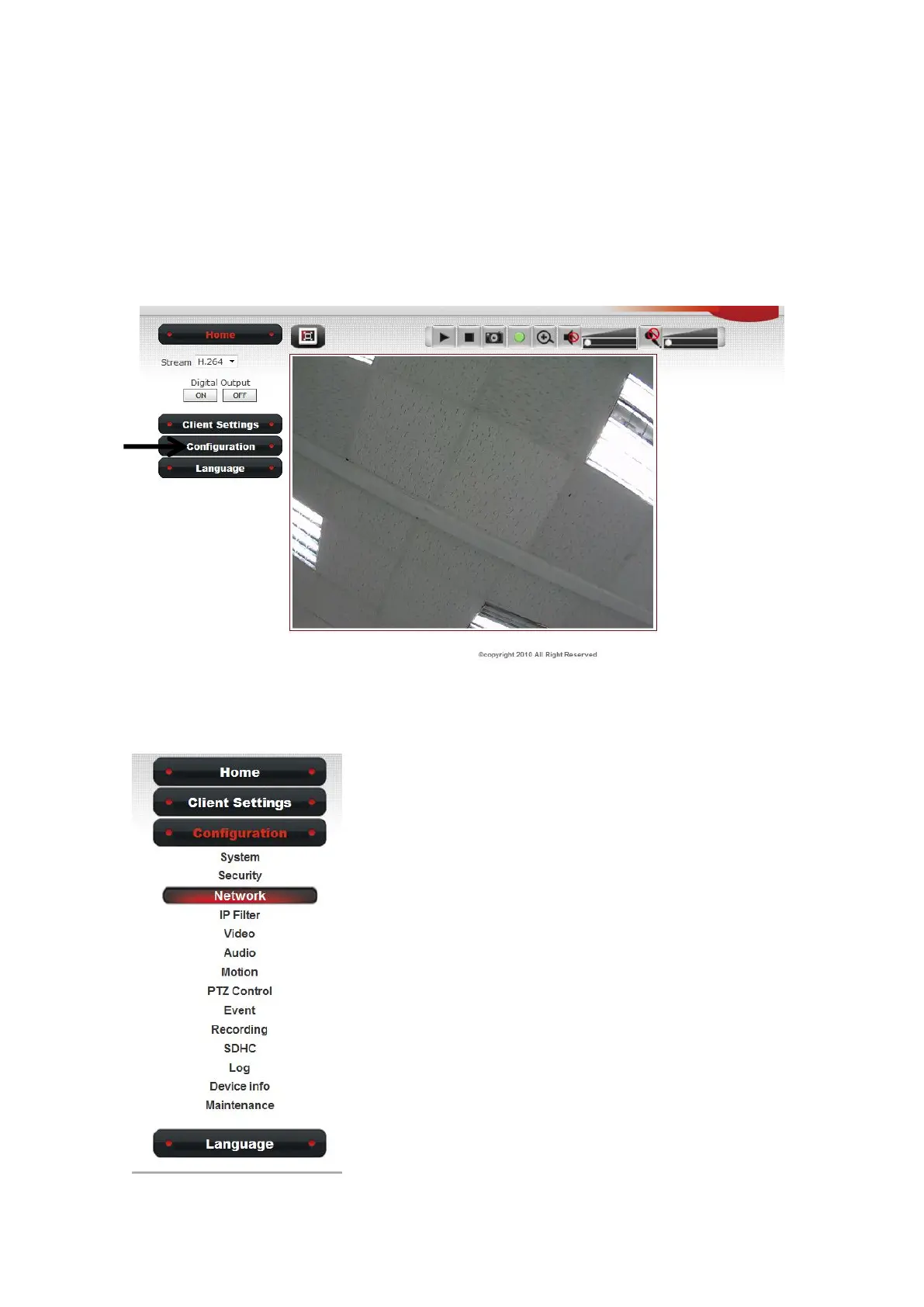 If you wish to configure IP camera’s settings, you can access IP camera’s
