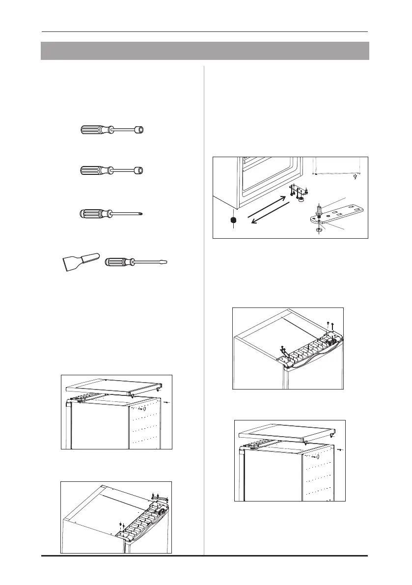 adjustable feet and remove the bottom hinge