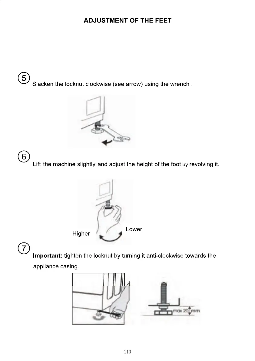 and secure it to the floor. If the floor is uneven, adjust the 4 leveling feet as