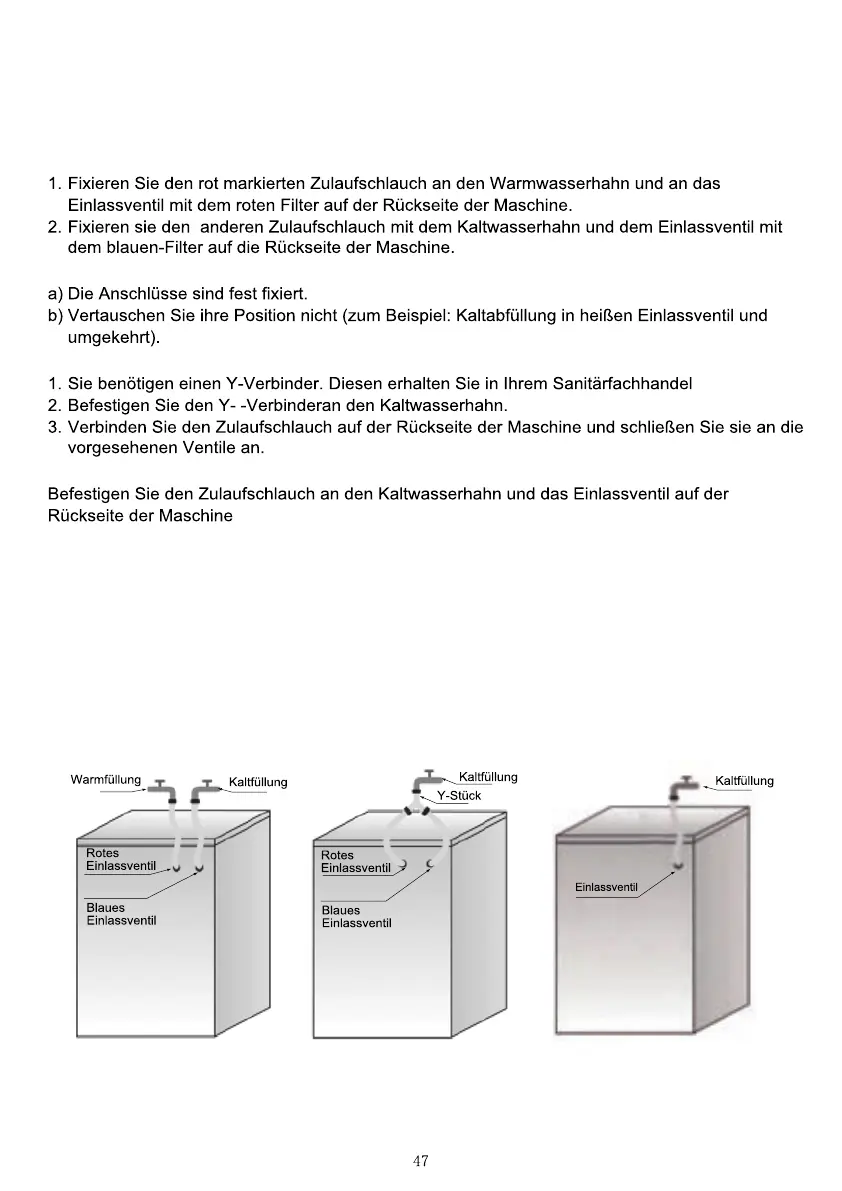 Wenn Sie Warm-und Kaltwasserversorgung anschließen möchten(Abb. 1):