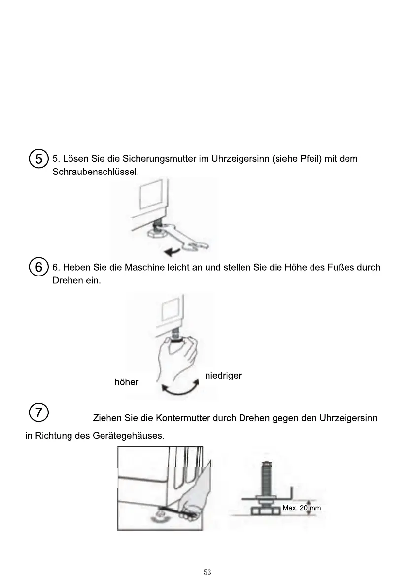 Boden. Wenn der Boden uneben ist, passen Sie die vier Stellfüße nach Bedarf an,