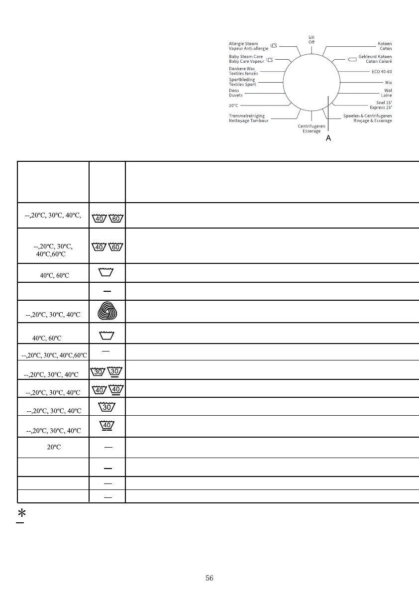 Programm für leicht bis mäßig schmutzige Wäsche. Die Temperatur kann separat eingestellt werden; beachten