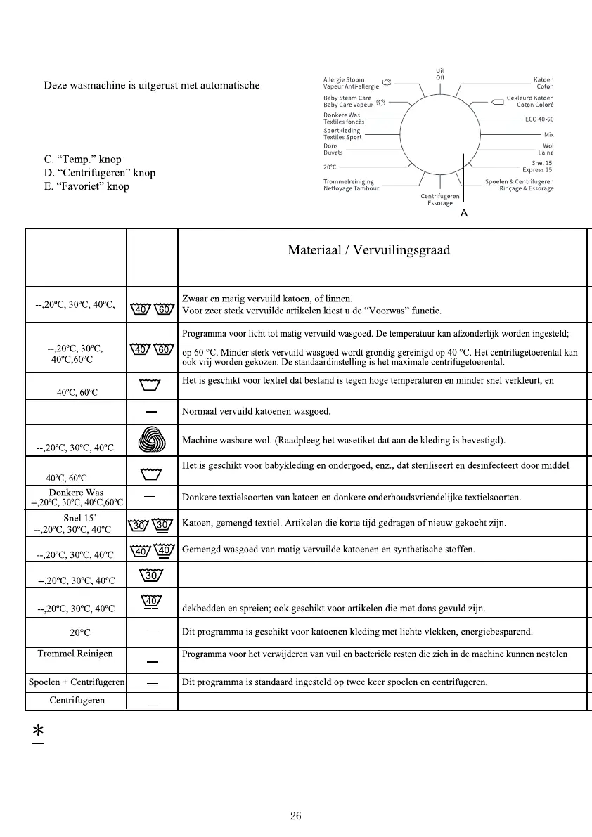 Wastemperatuur gekozen volgens de aanwijzingen op het wasetiket.