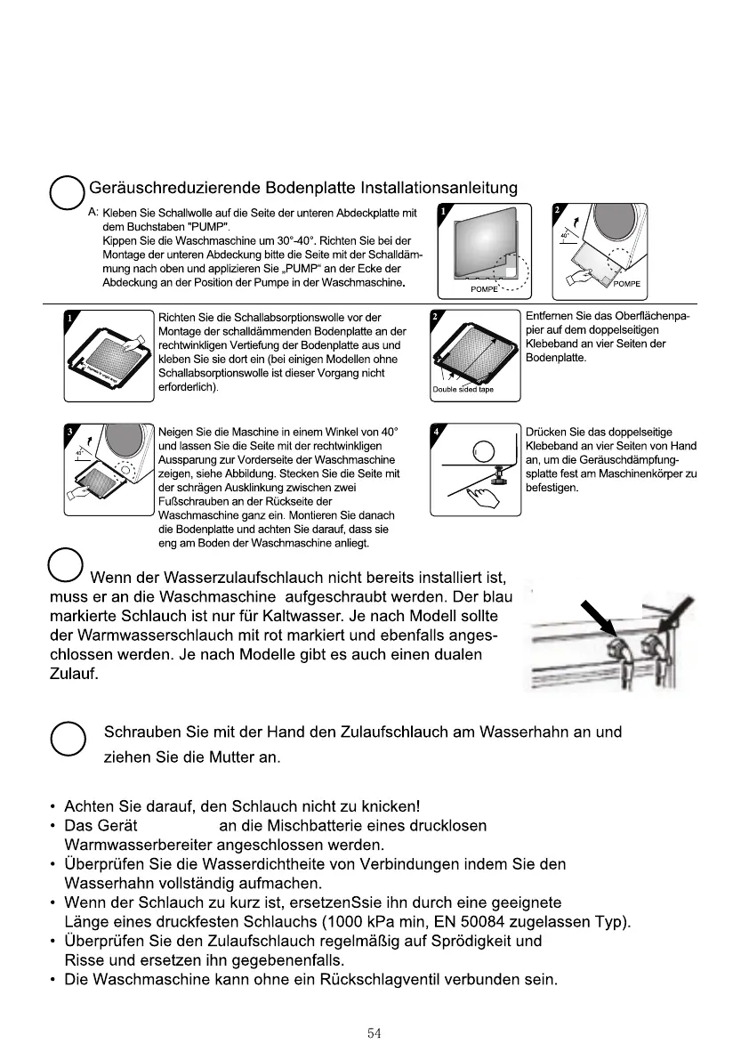 Unterseite der Waschmaschine wird der Geräuschpegel stark reduziert. Bitte