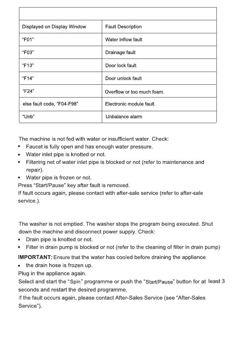 a. “F01” displayed on screen