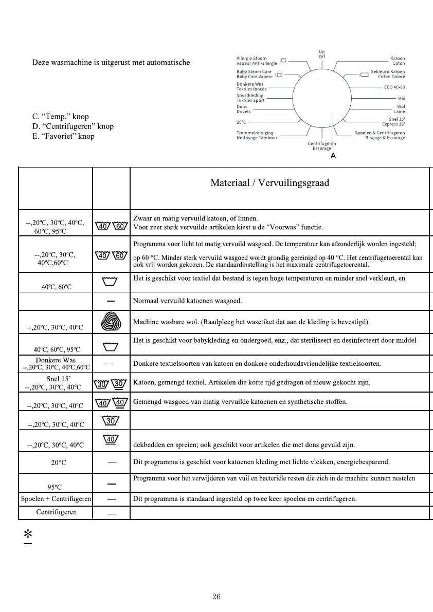 Wastemperatuur gekozen volgens de aanwijzingen op het wasetiket.