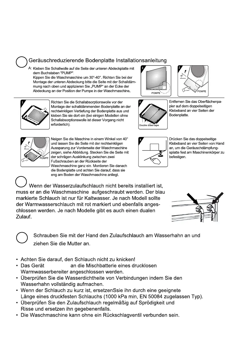 Unterseite der Waschmaschine wird der Geräuschpegel stark reduziert. Bitte