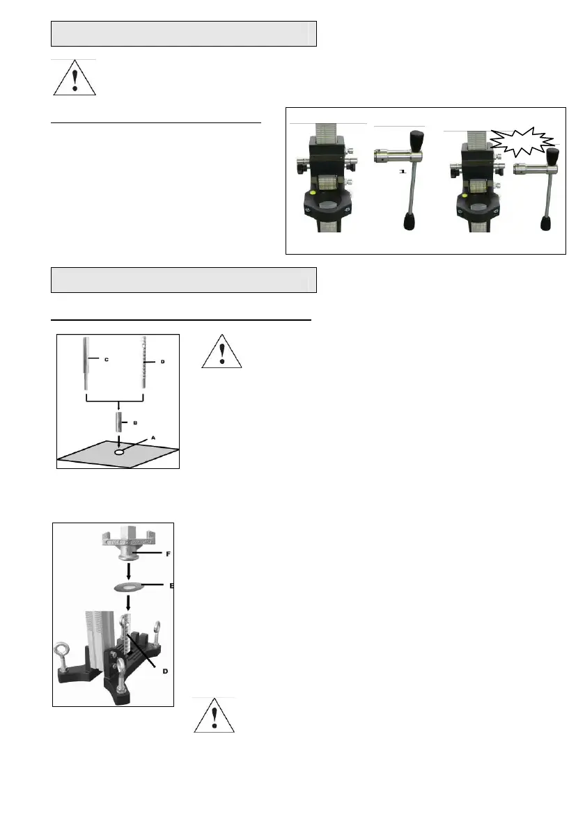 Vóór en na het vastdraaien van de moer (F),