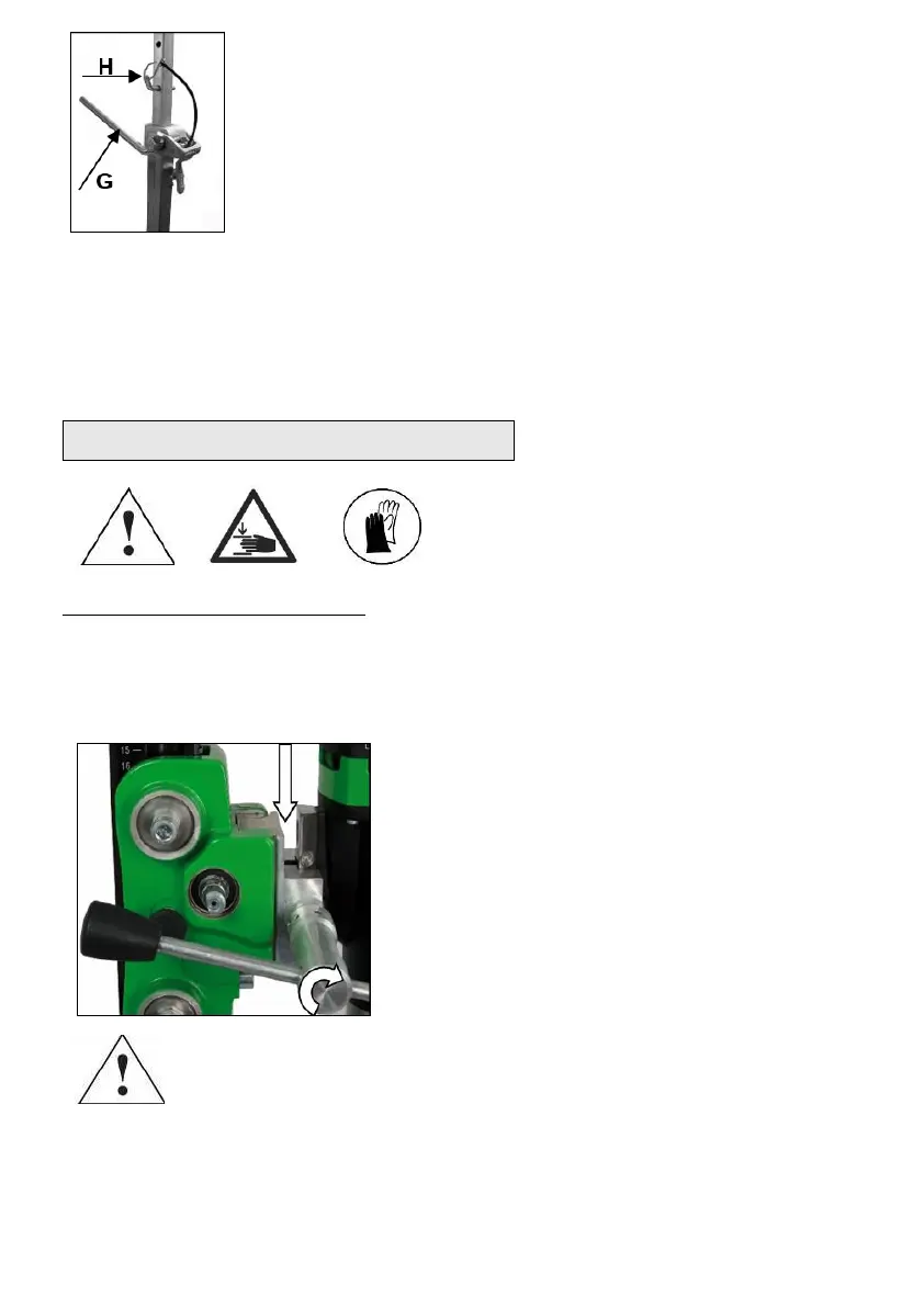 door de arm (G) rechtsom te draaien. Zet het vast in positie