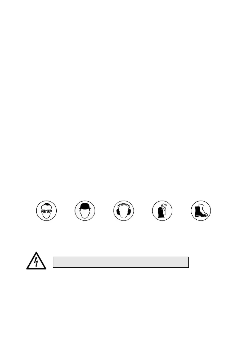 Schutzbrille, Schutzhelm, Gehörschutz, Schutzhandschuhe und