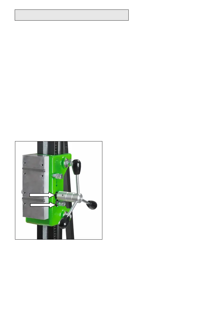 Sur la foreuse PLB 450.1 G, le tourniquet peut être monté sur le chariot sur deux