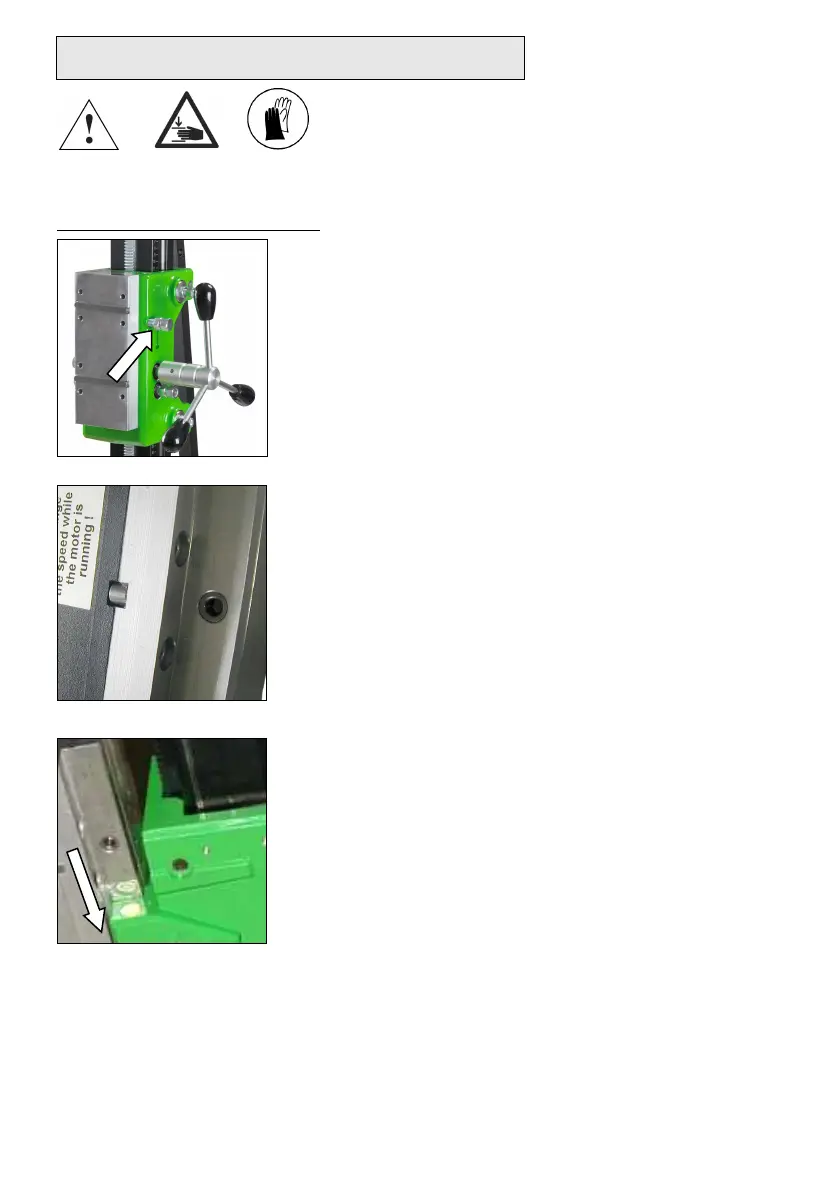 Vorsicht beim Einsetzen der Maschine, Quetschgefahr!