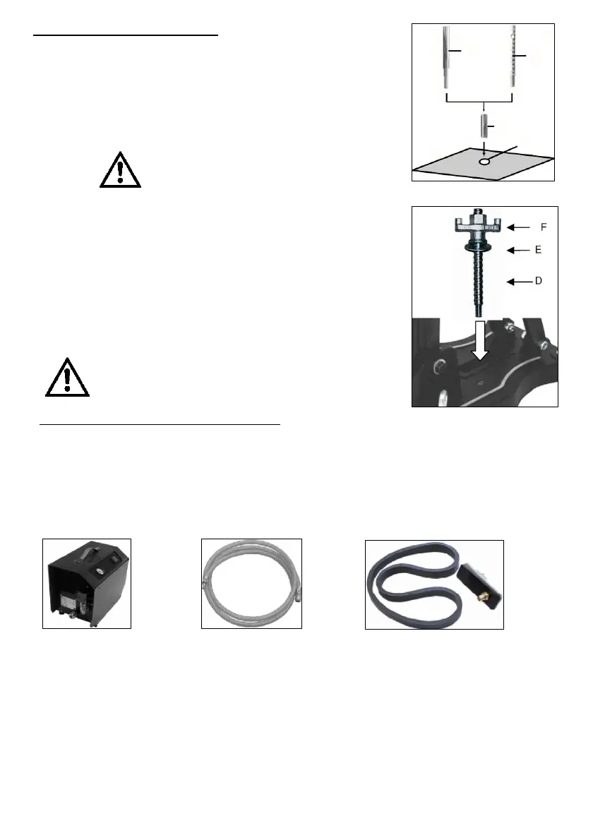 Wsunąć podkładkę (E) i nakrętkę skrzydełkową (F)