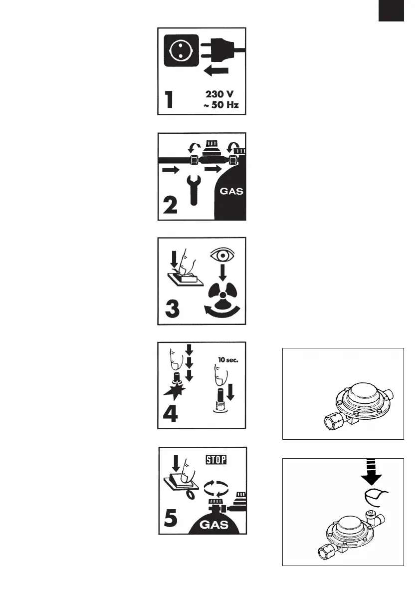 valvola del gas e premere