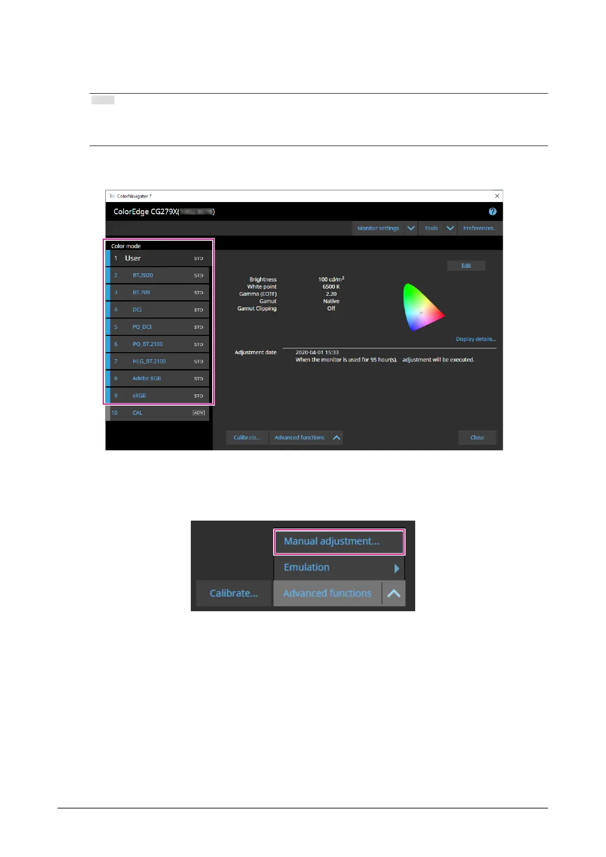 Click “Advanced Functions” and select “Manual adjustment” from the menu.