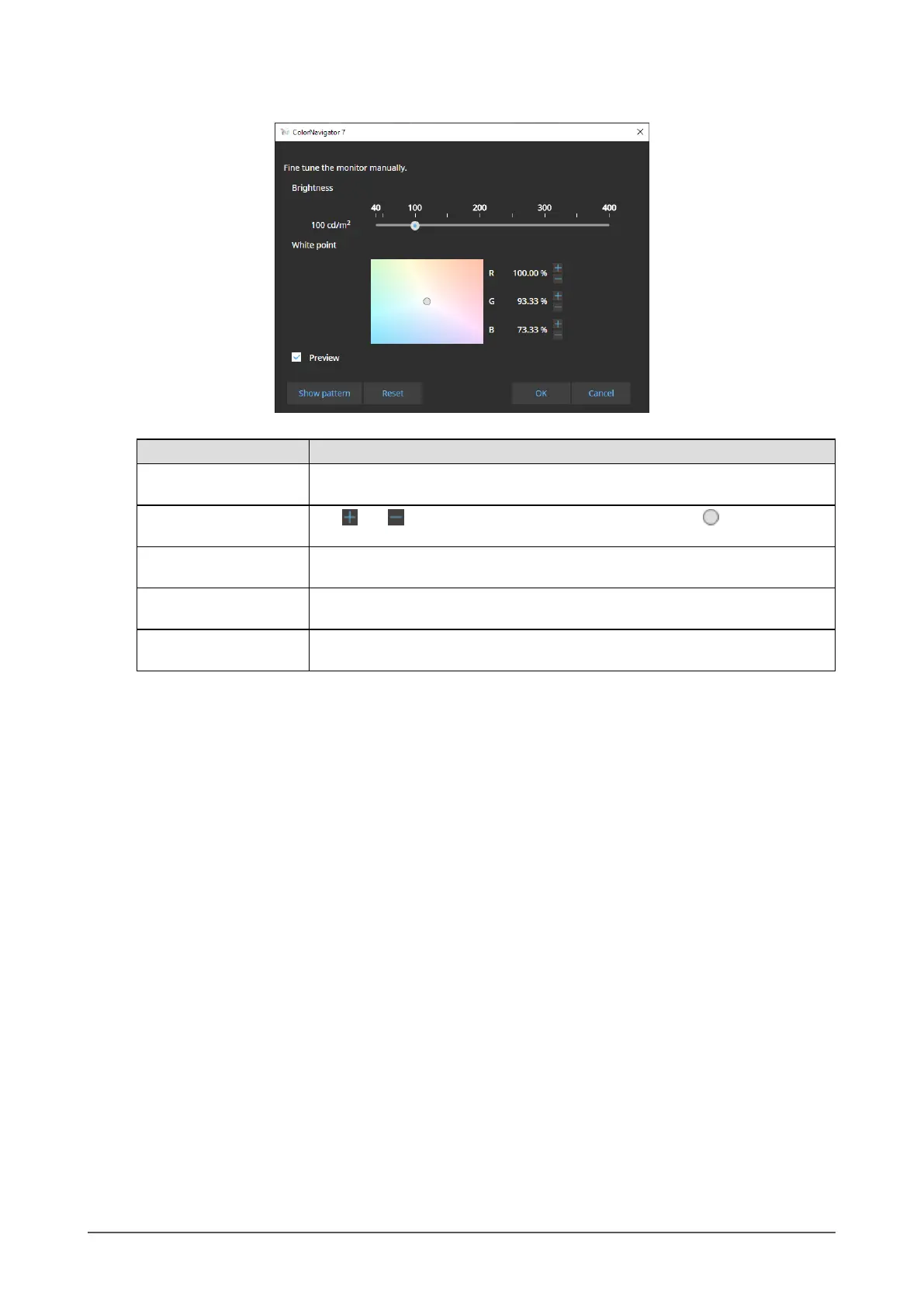 Brightness Move the slider and adjust the monitor brightness. Depending on the monitor you