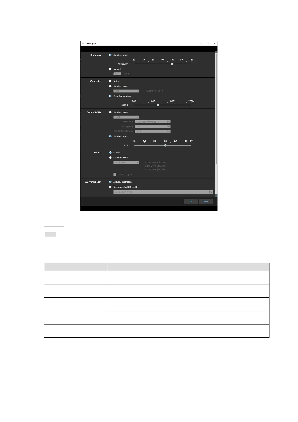 White point Specify the white point. Use the default monitor settings, use the standard