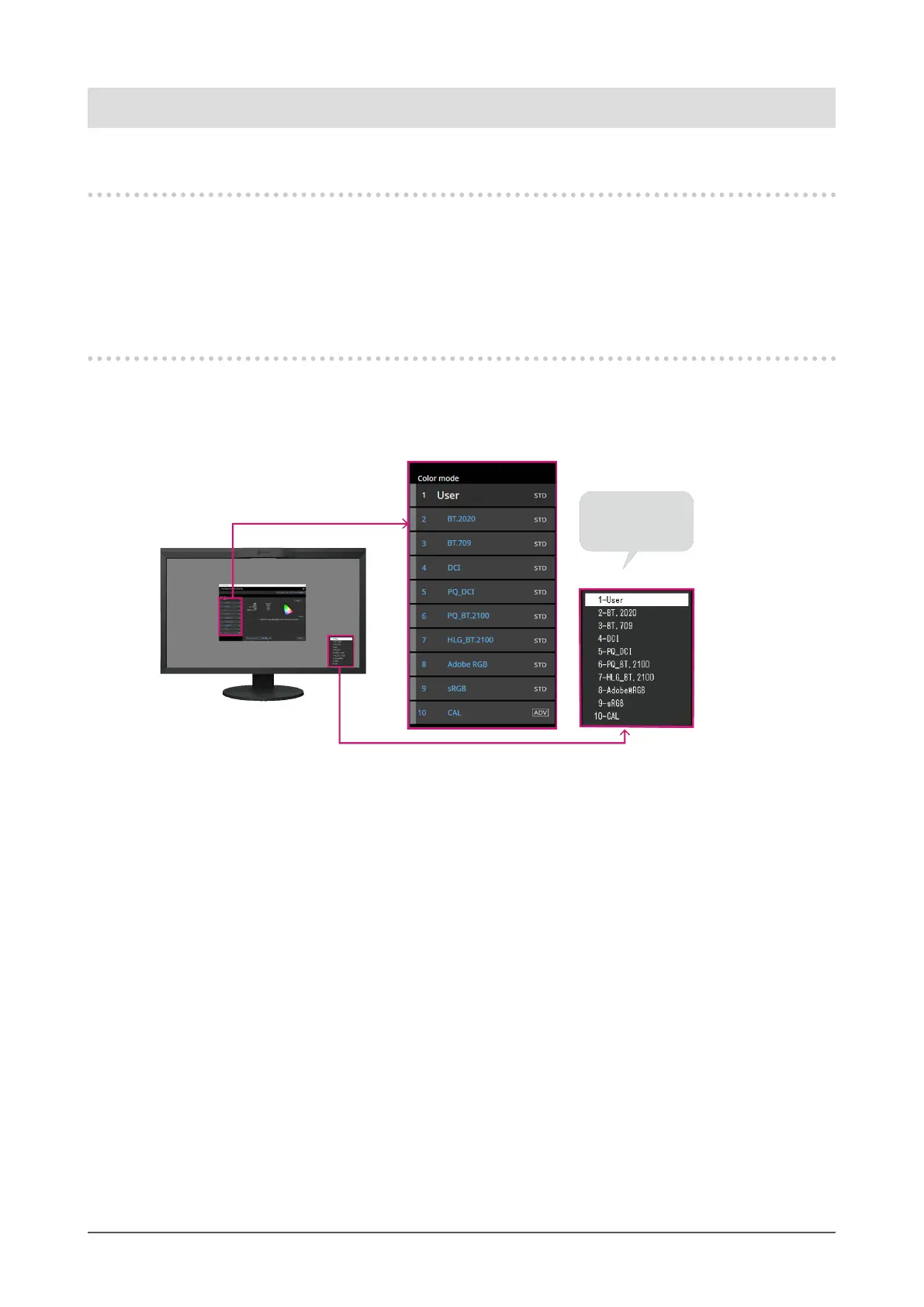 After calibrating the monitor with ColorNavigator 7, you can easily switch display states by changing the color