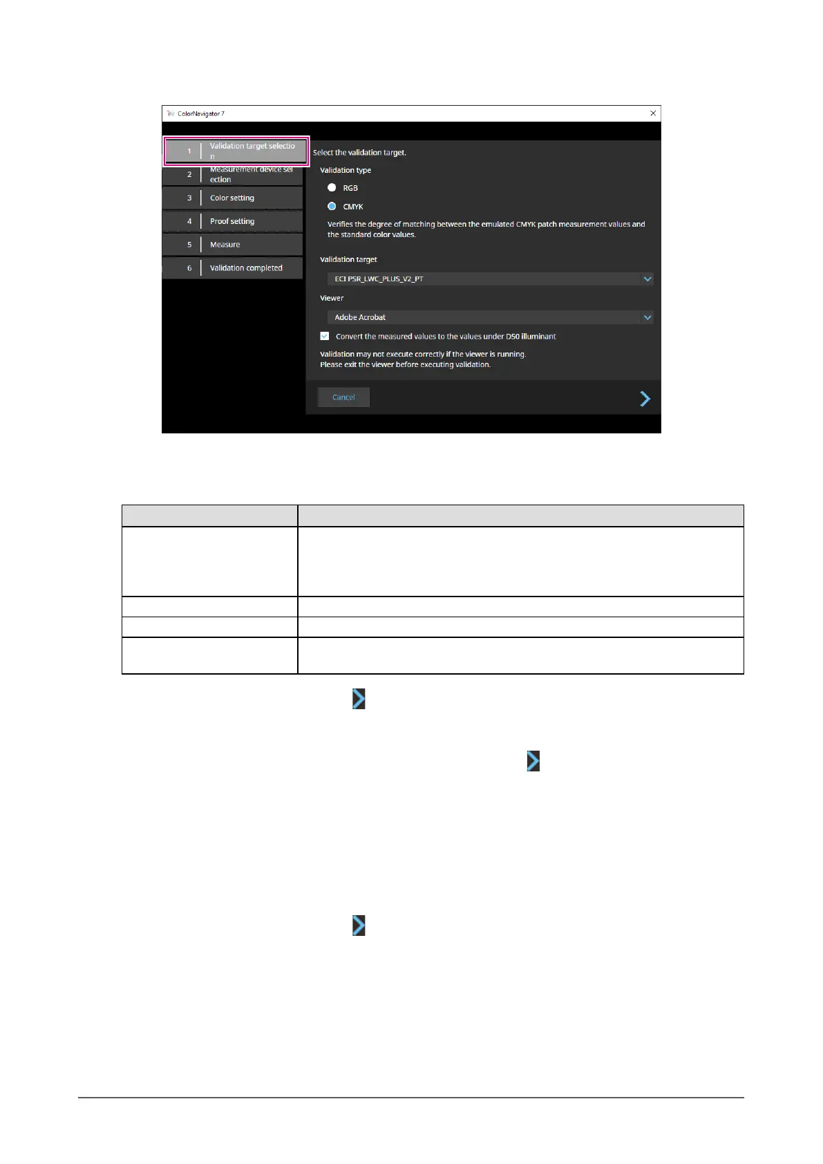 When “CMYK” is selected for “Validation type”, congure the settings as