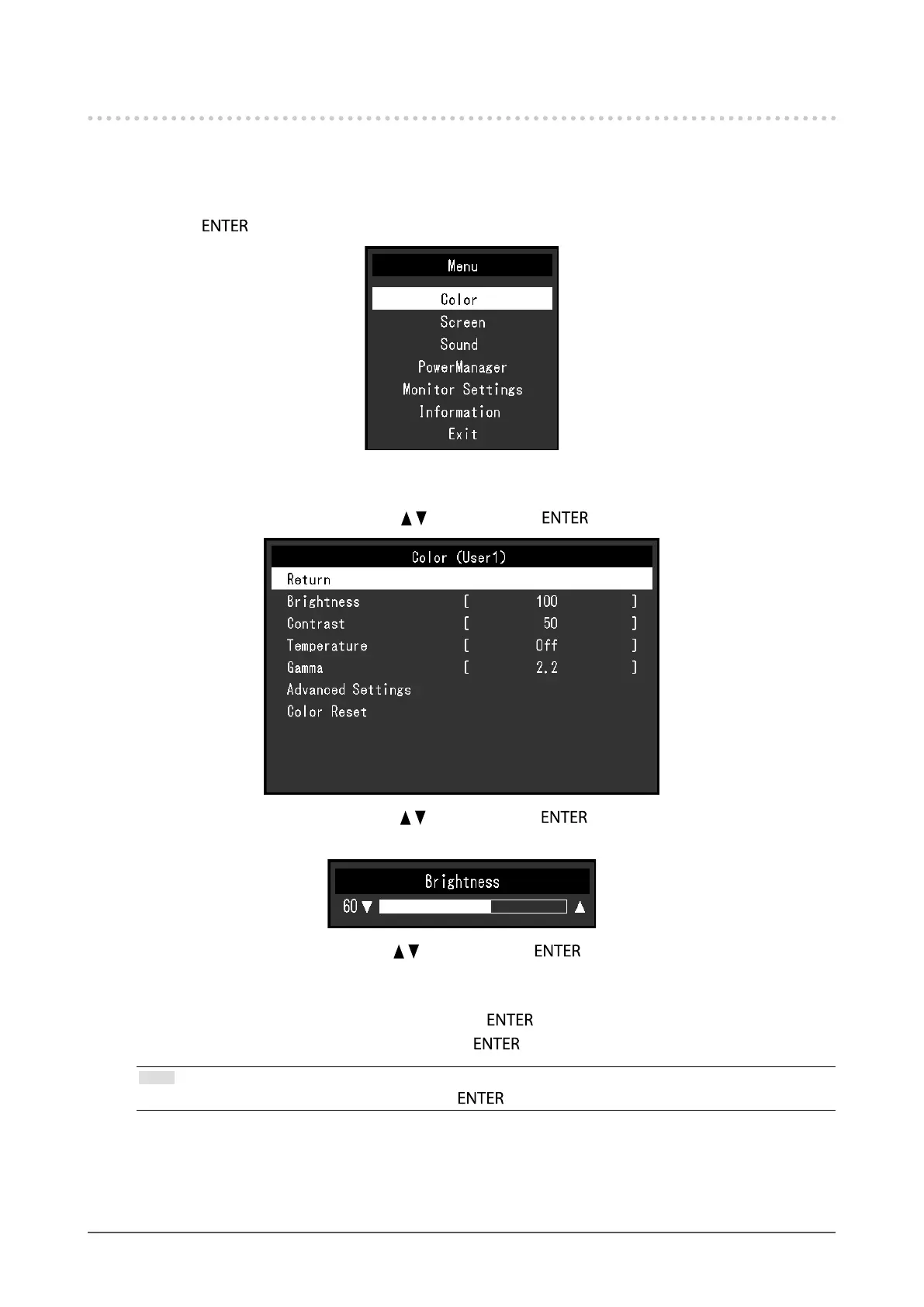 3. Adjust / set the selected item with , , and then press .