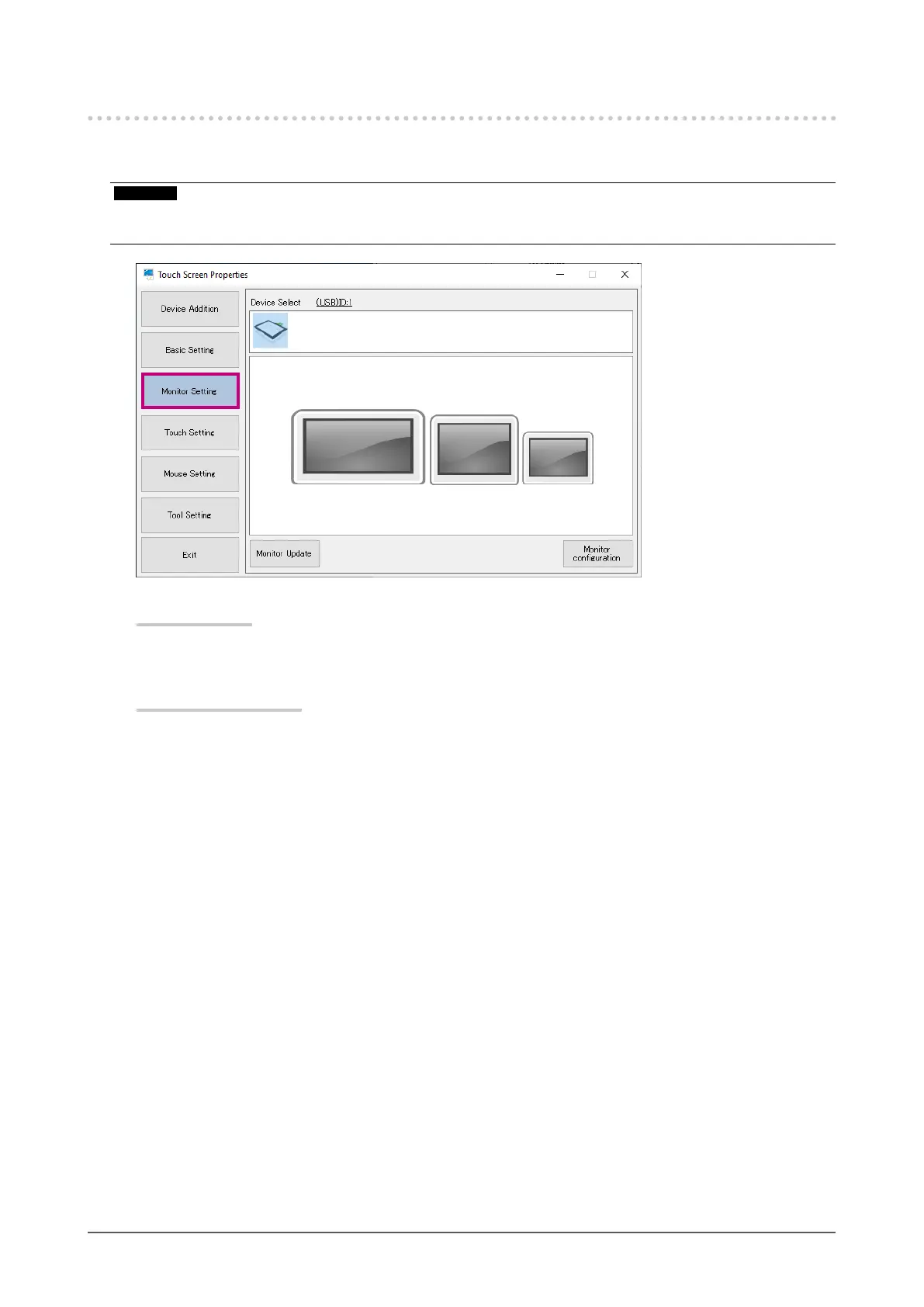 • Before you run the monitor conguration, “Installing the Touch Panel Driver” must be completed. (Refer to “2-3.