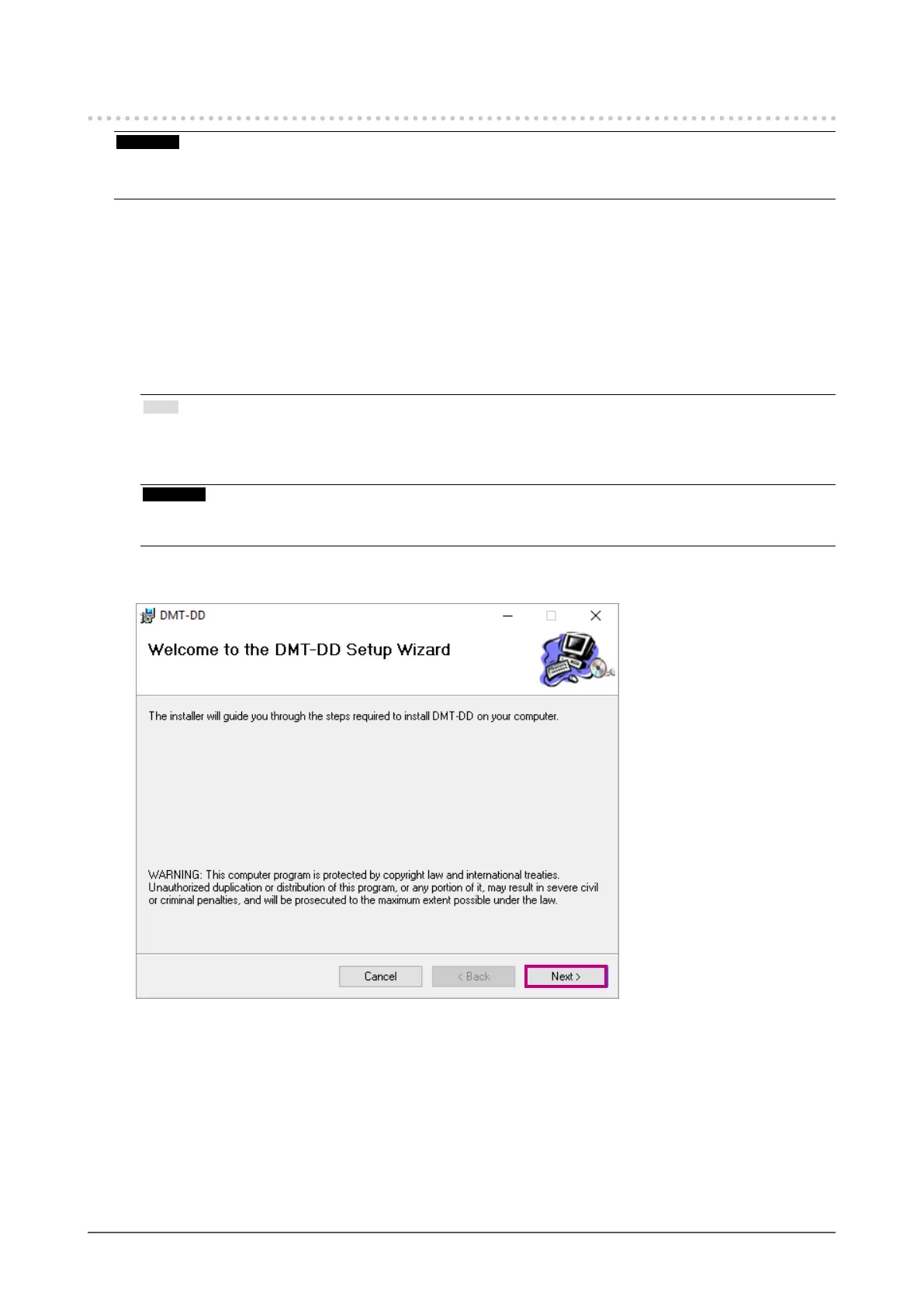 The “Welcome to the DMT-DD Setup Wizard” window will appear.