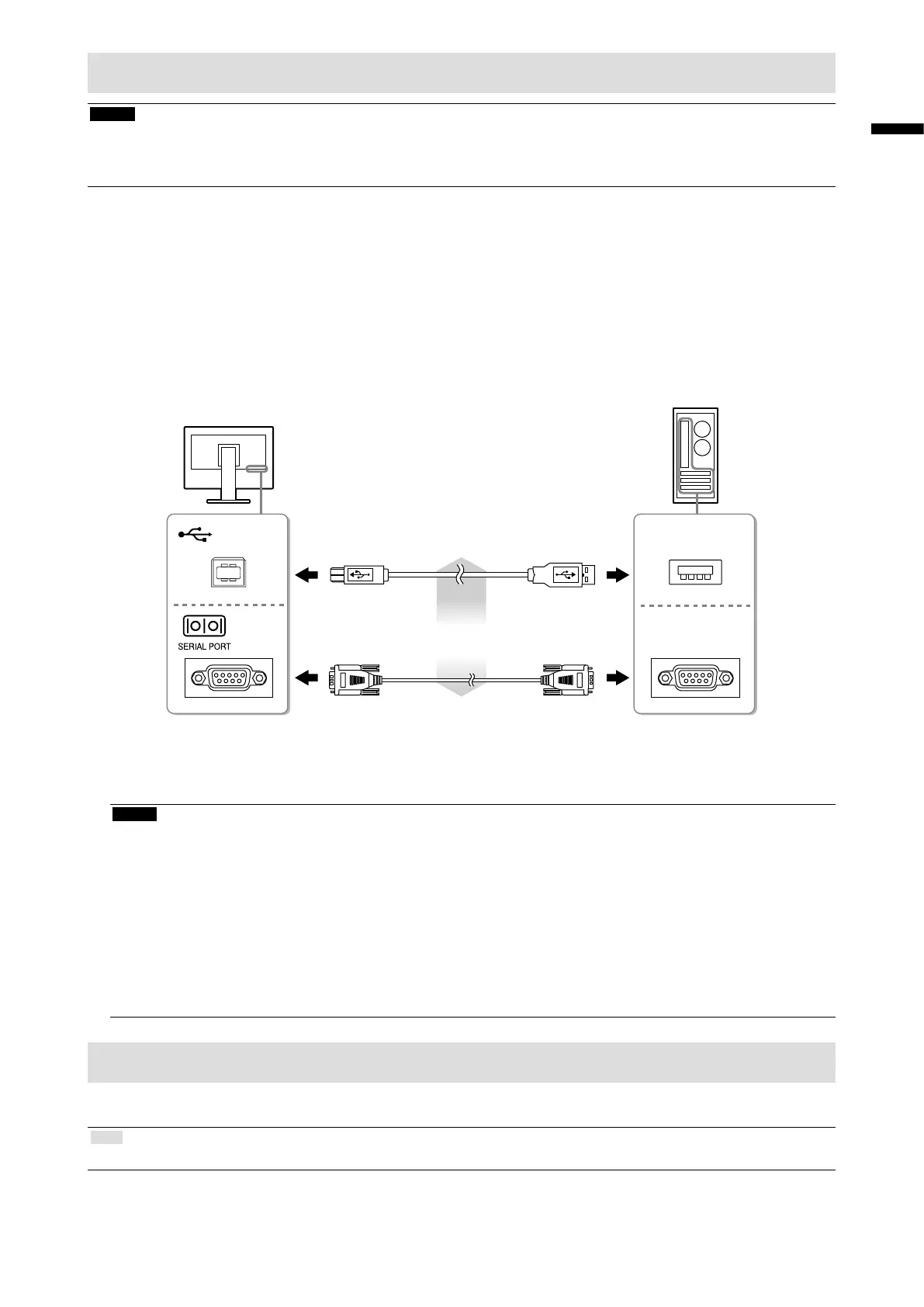 USBケーブルまたはRS-232Cケーブルを使って、コンピュータとモニターを接続し