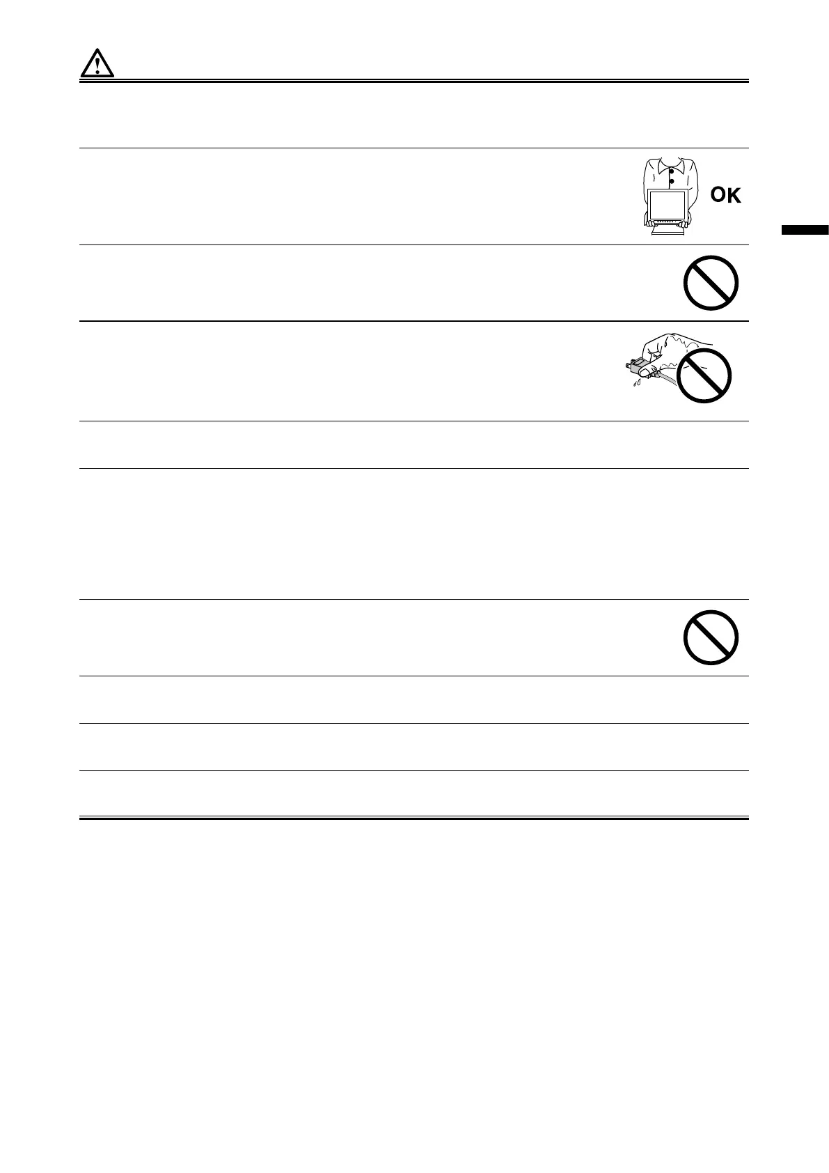 • Before moving the monitor, be sure to turn o the power switch, disconnect the power plug from the