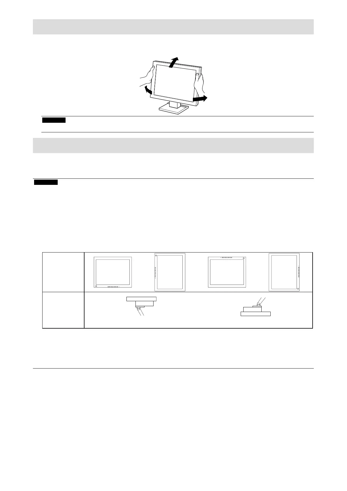 • Lors de la xation d’un bras ou d’un pied, les orientations d’installation possibles et la plage de déplacement (angle