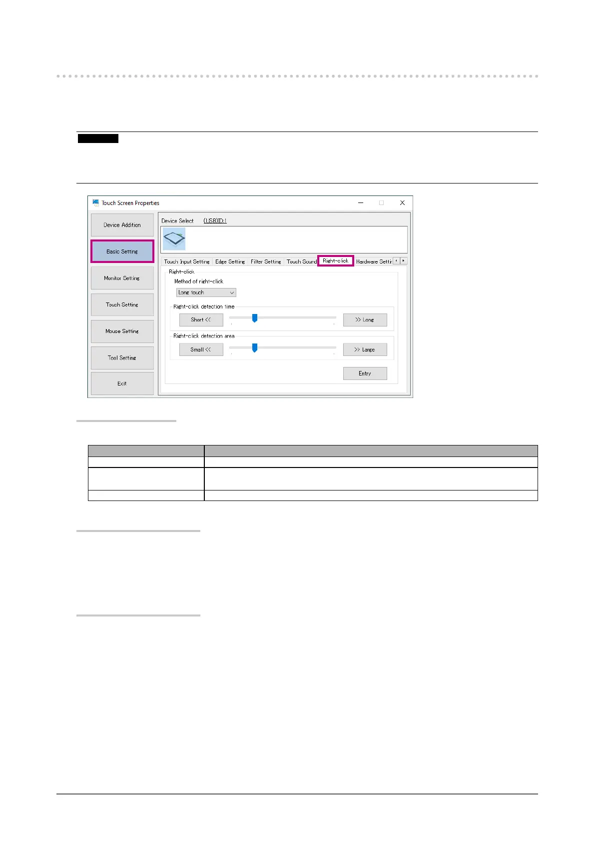 Set “Right-click detection time” and “Right-click detection area” when “Long touch” is selected.