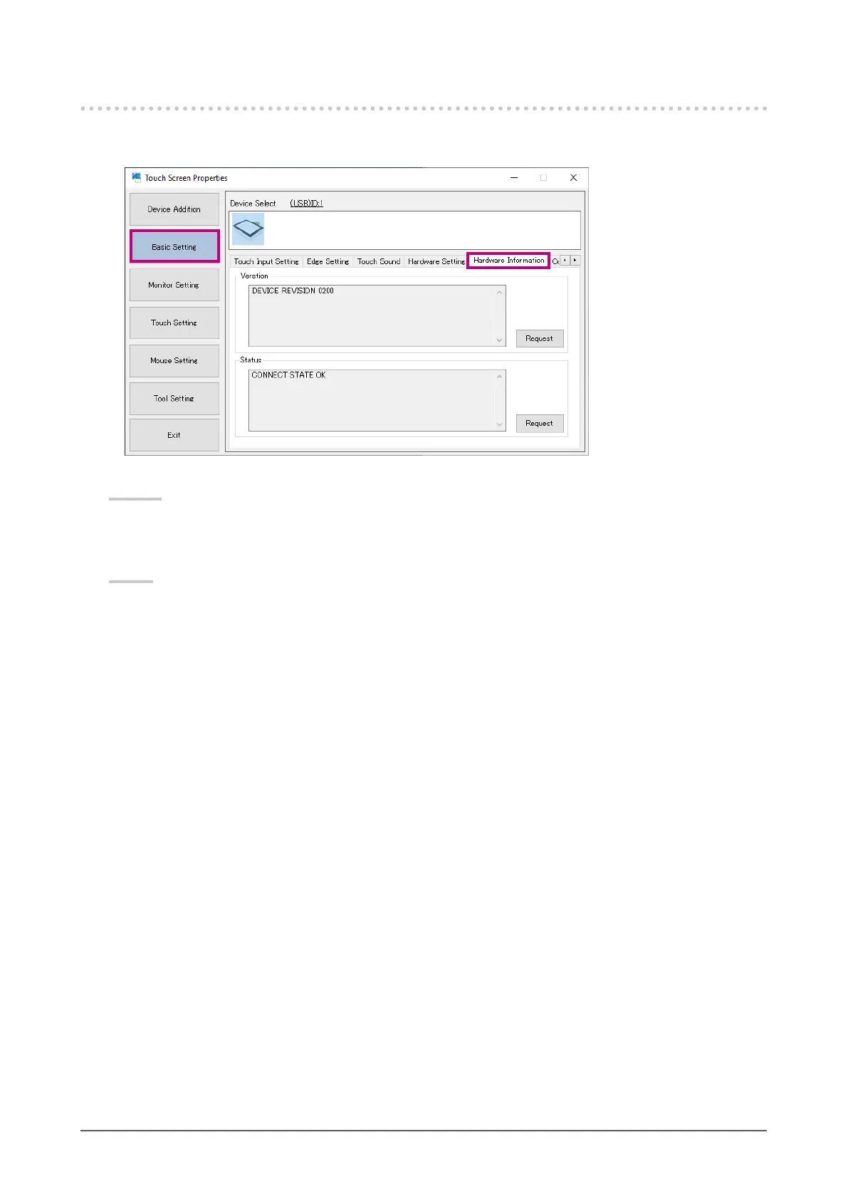 You can check the status of the touch panel being selected. Click “Request” to display the status of