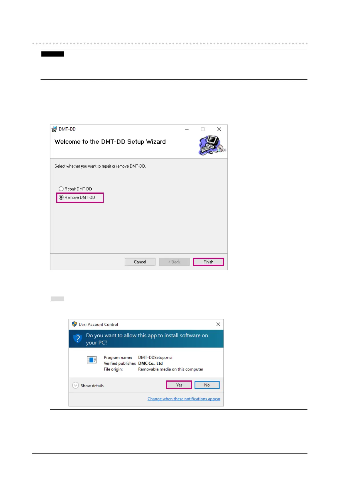 • If you uninstall DMT-DD, all installed touch panel drivers will be automatically uninstalled.