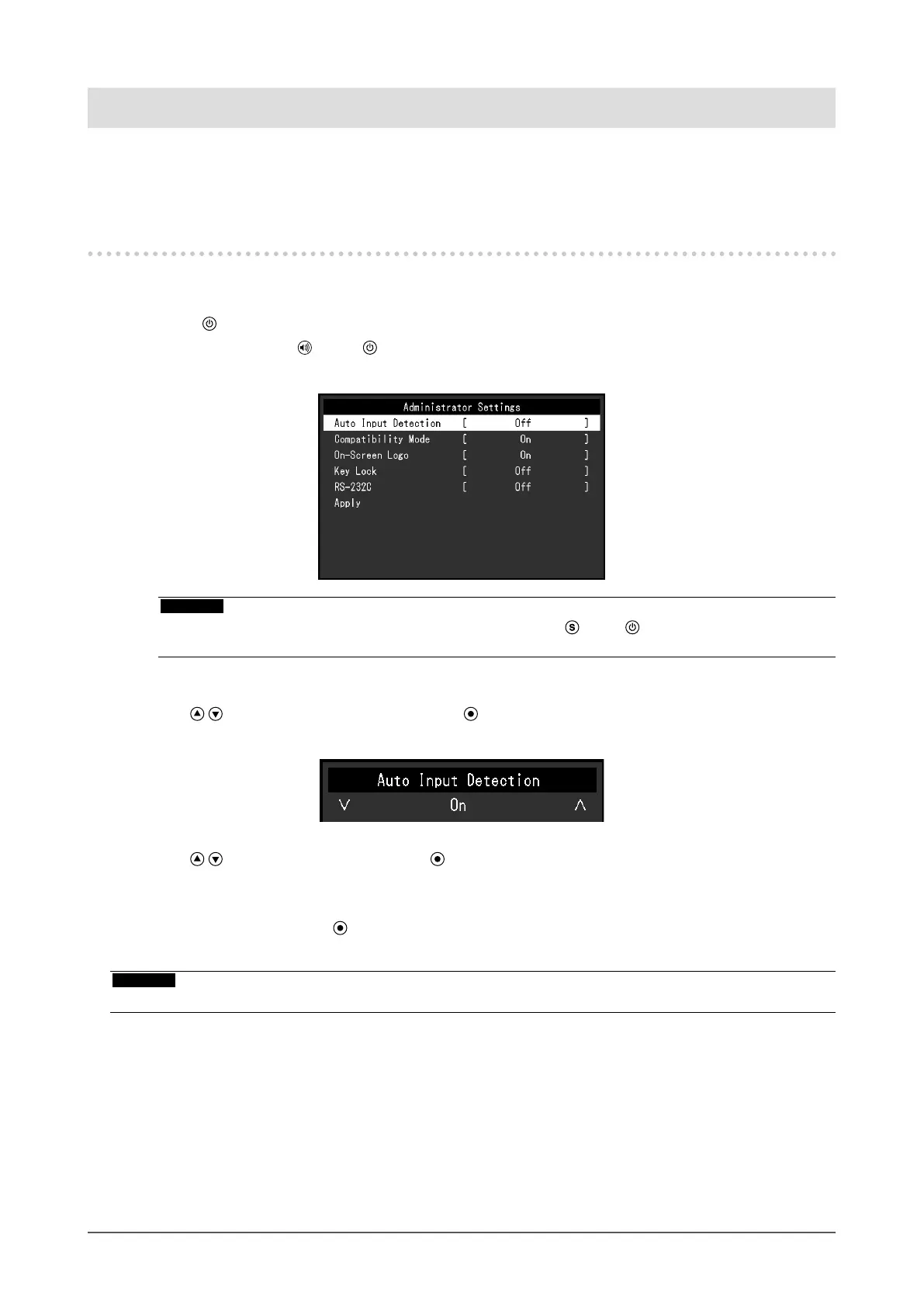 This chapter describes how to congure monitor operation using the "Administrator Settings" menu.