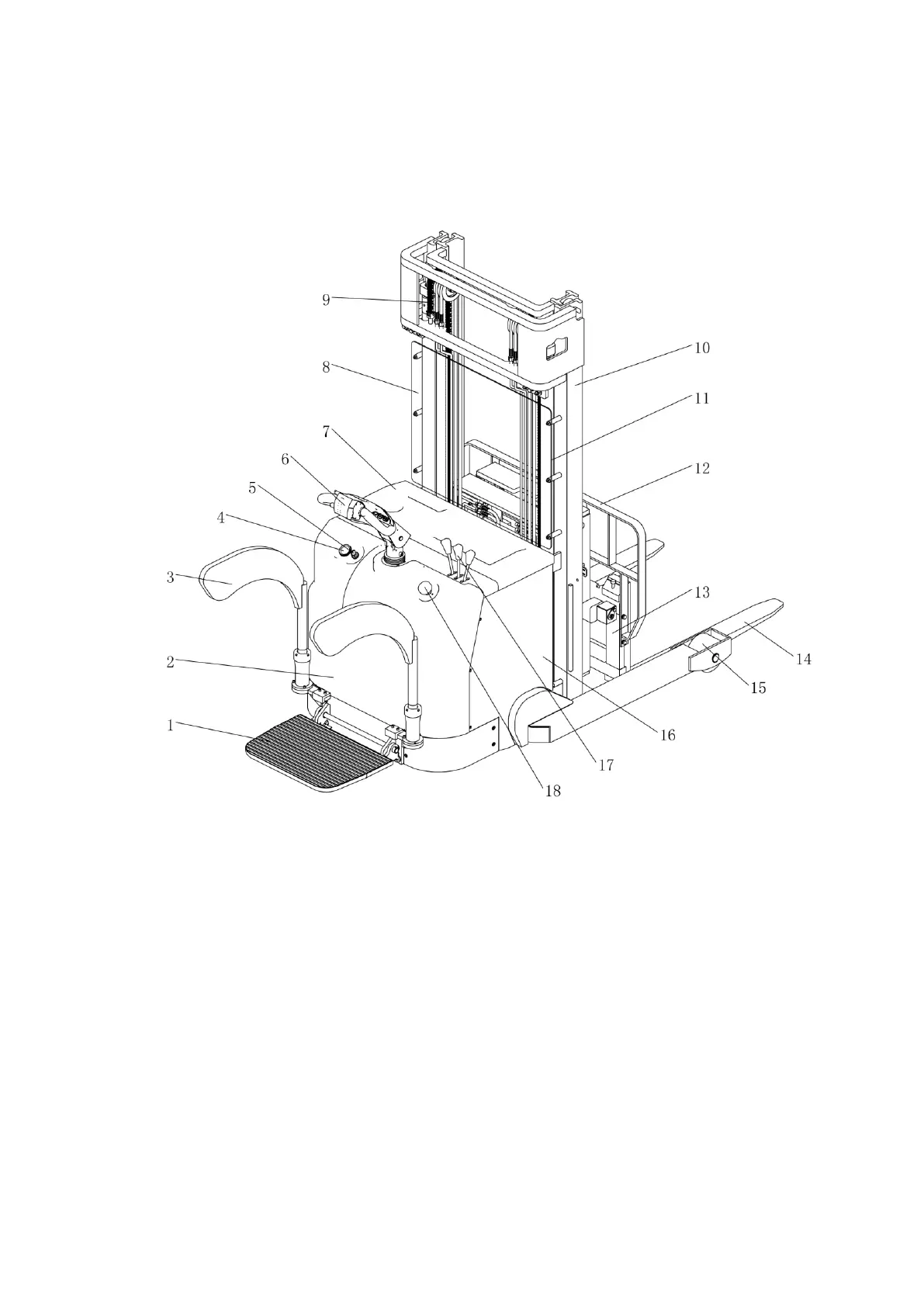 10.Mast frame assembly 11.Lift cylinder 12.Protective barrier