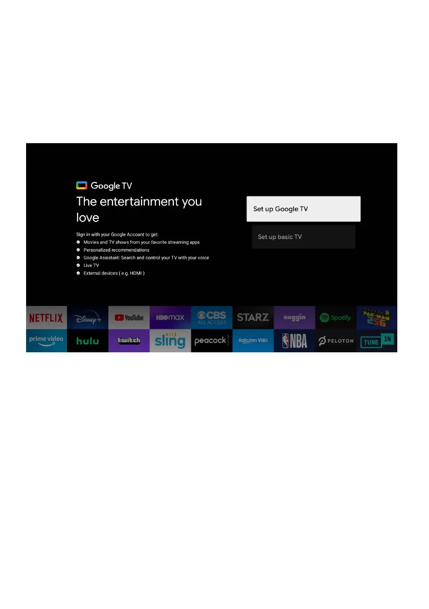 If you want to SKIP Google TV Setup steps - SELECT “SET UP BASIC TV” and proceed to page