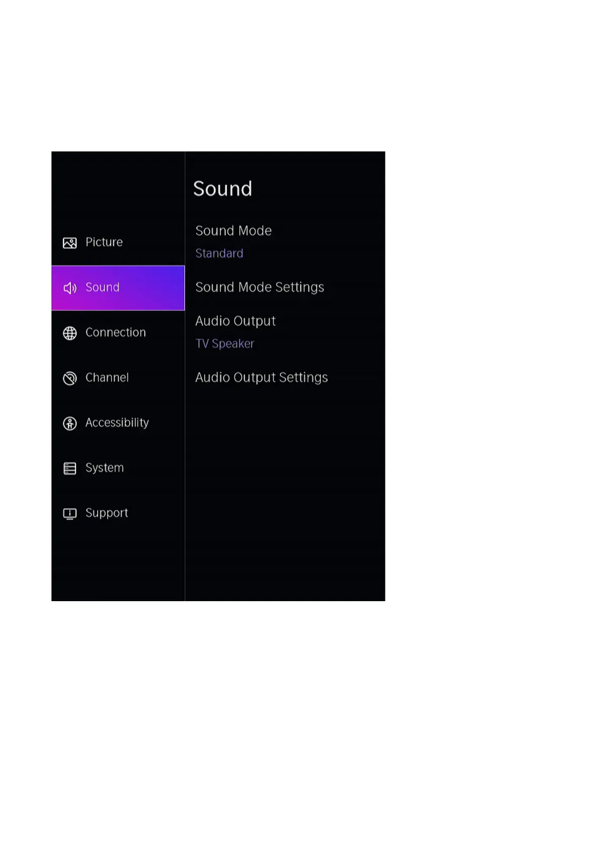 To access SOUND menu, select Setting (#6 on page 30) menu and go down and select SOUND.