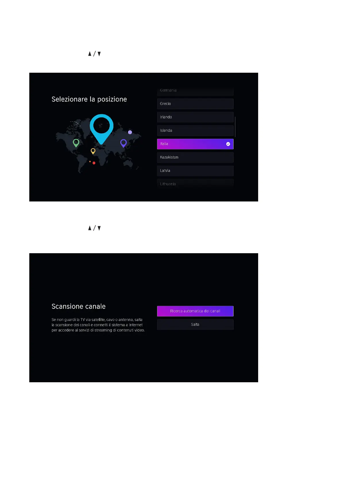 Utilizzare i pulsanti per selezionare la scansione canale, quindi premere OK / SELEZIONA