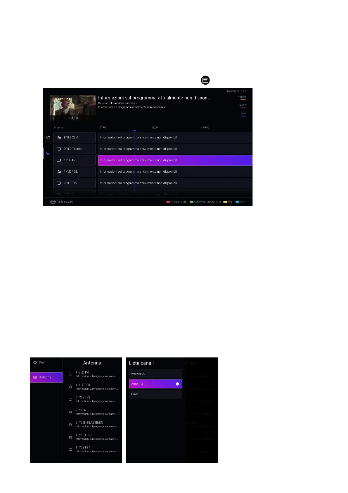 In Live TV, premere OK/ CH.LIST pulsante sul telecomando per visualizzare il menu Elenco