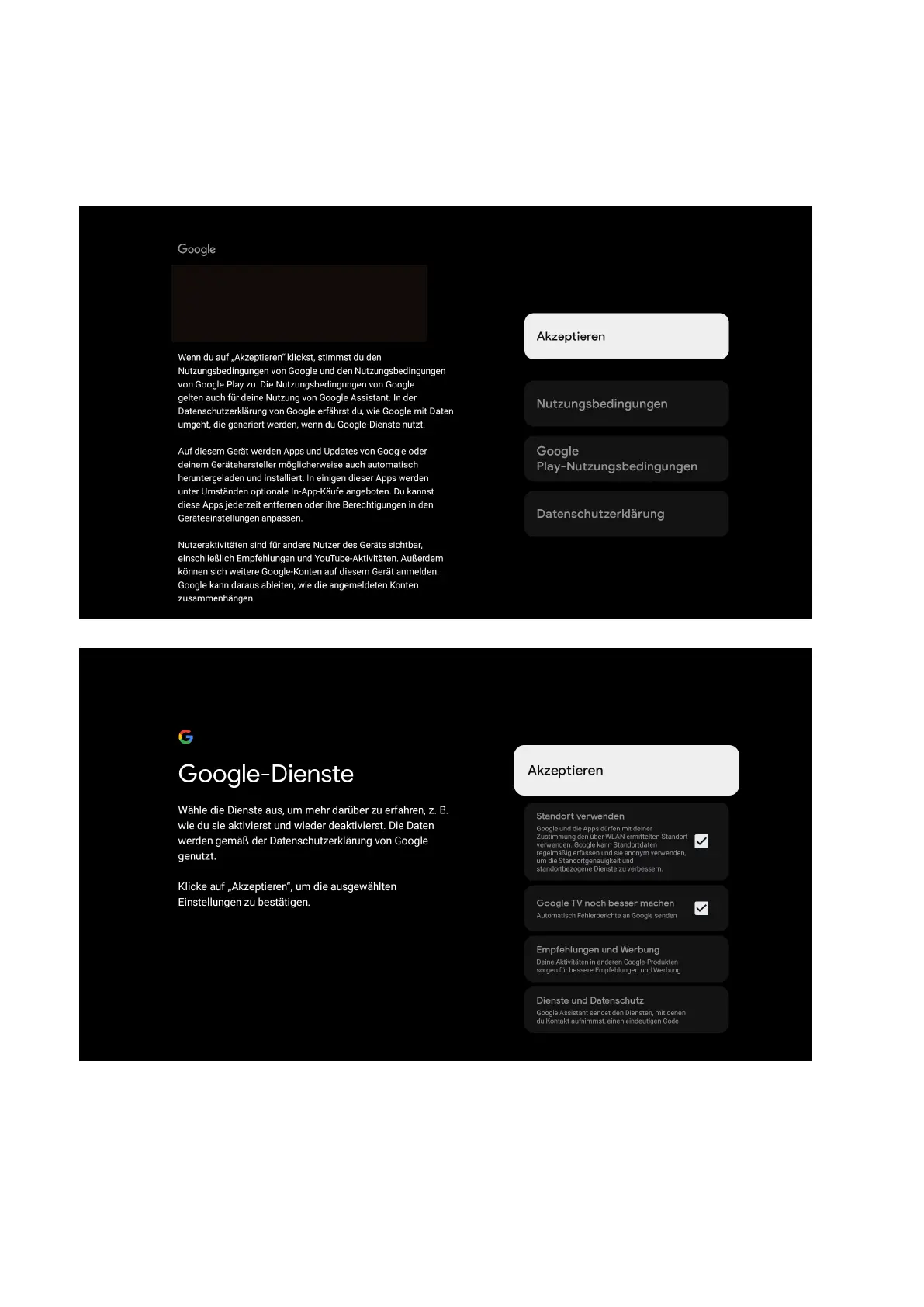 Wenn Sie die Nutzungsbedingungen von Google akzeptieren, um das Produkterlebnis zu ver-